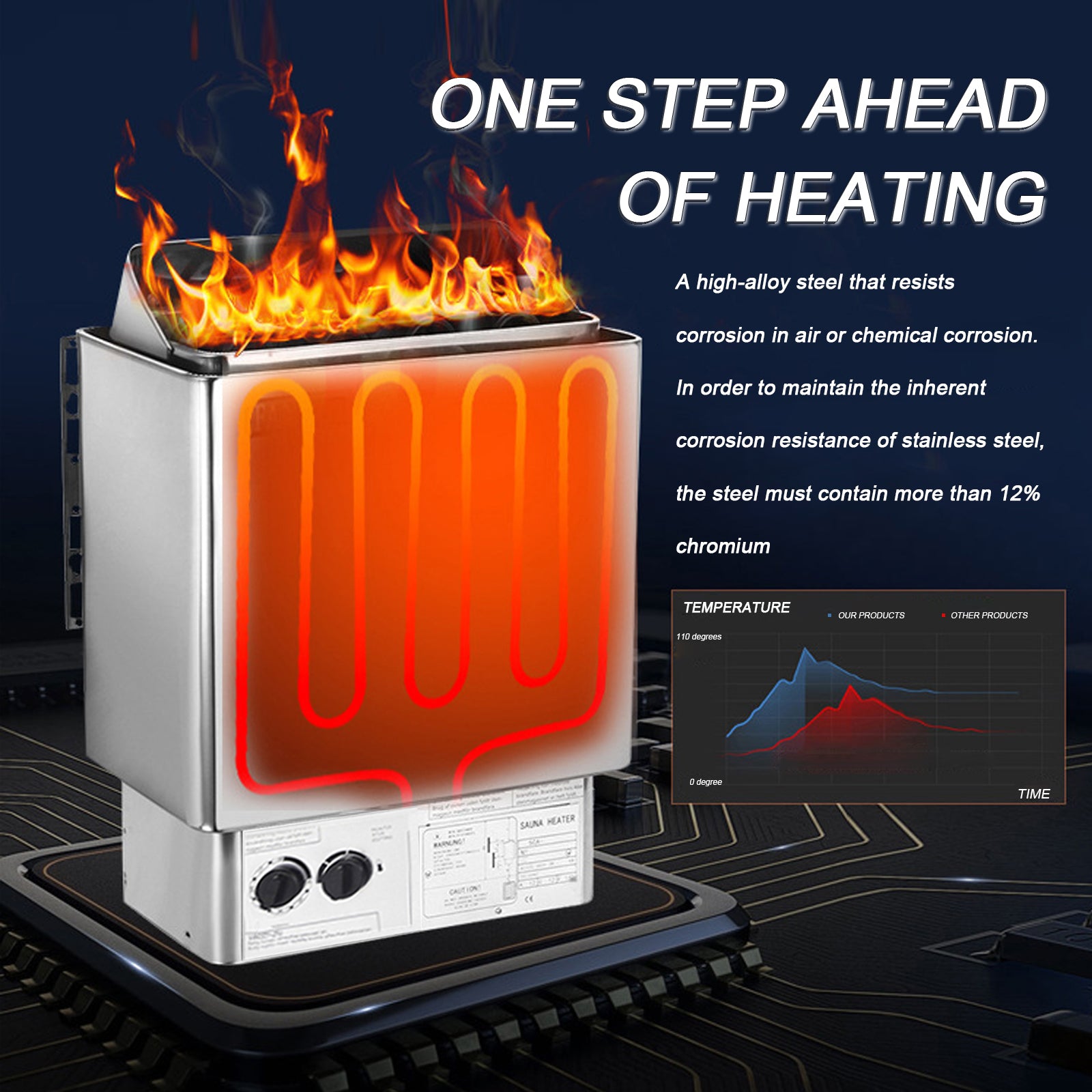 The indoor sauna heater is made from high-quality materials and heats up quickly, allowing you to enjoy your sauna session without long waiting times.