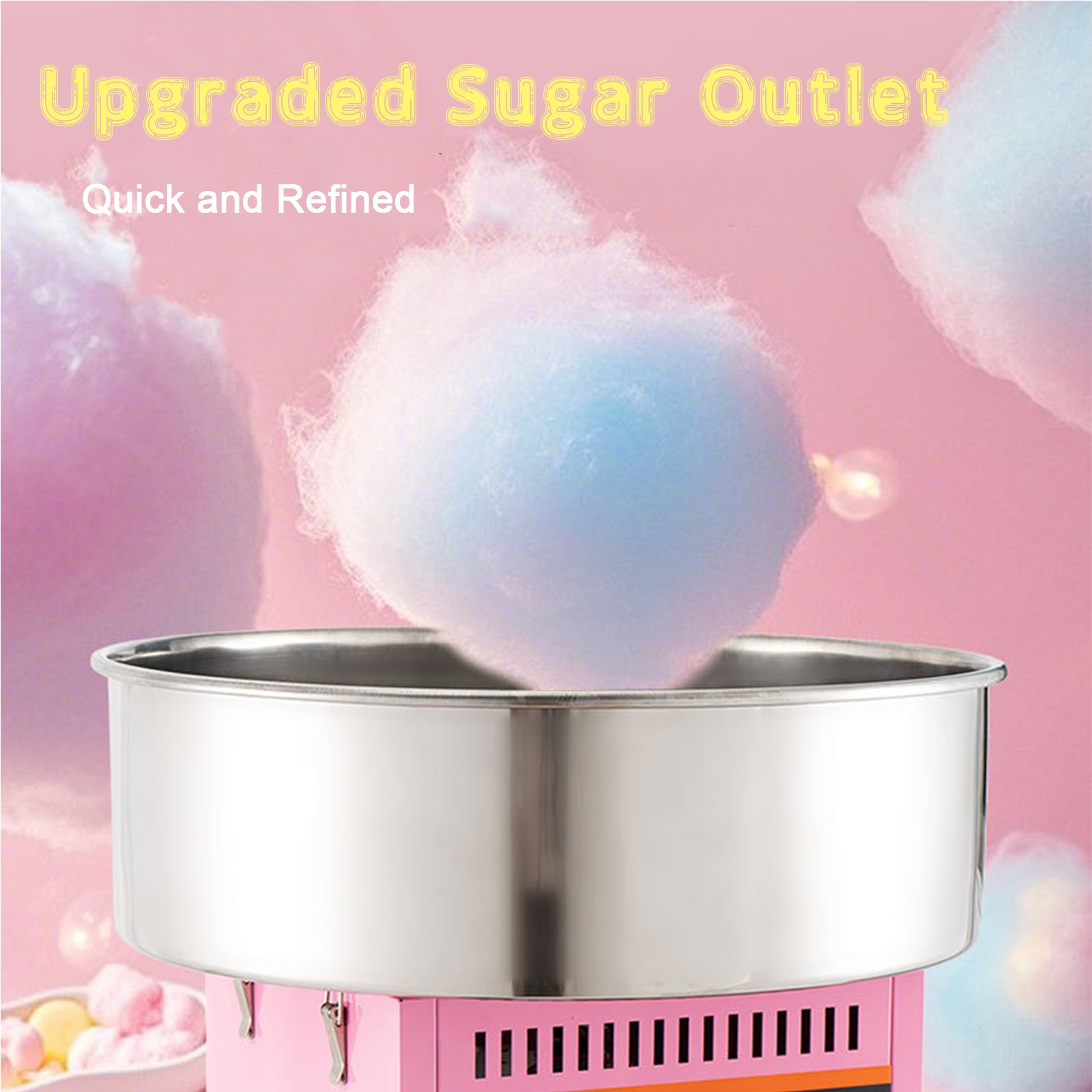 Efficient heating technology: The advanced heating system enables the quick melting of sugar and makes delicious cotton sweetness in less than 10 minutes.