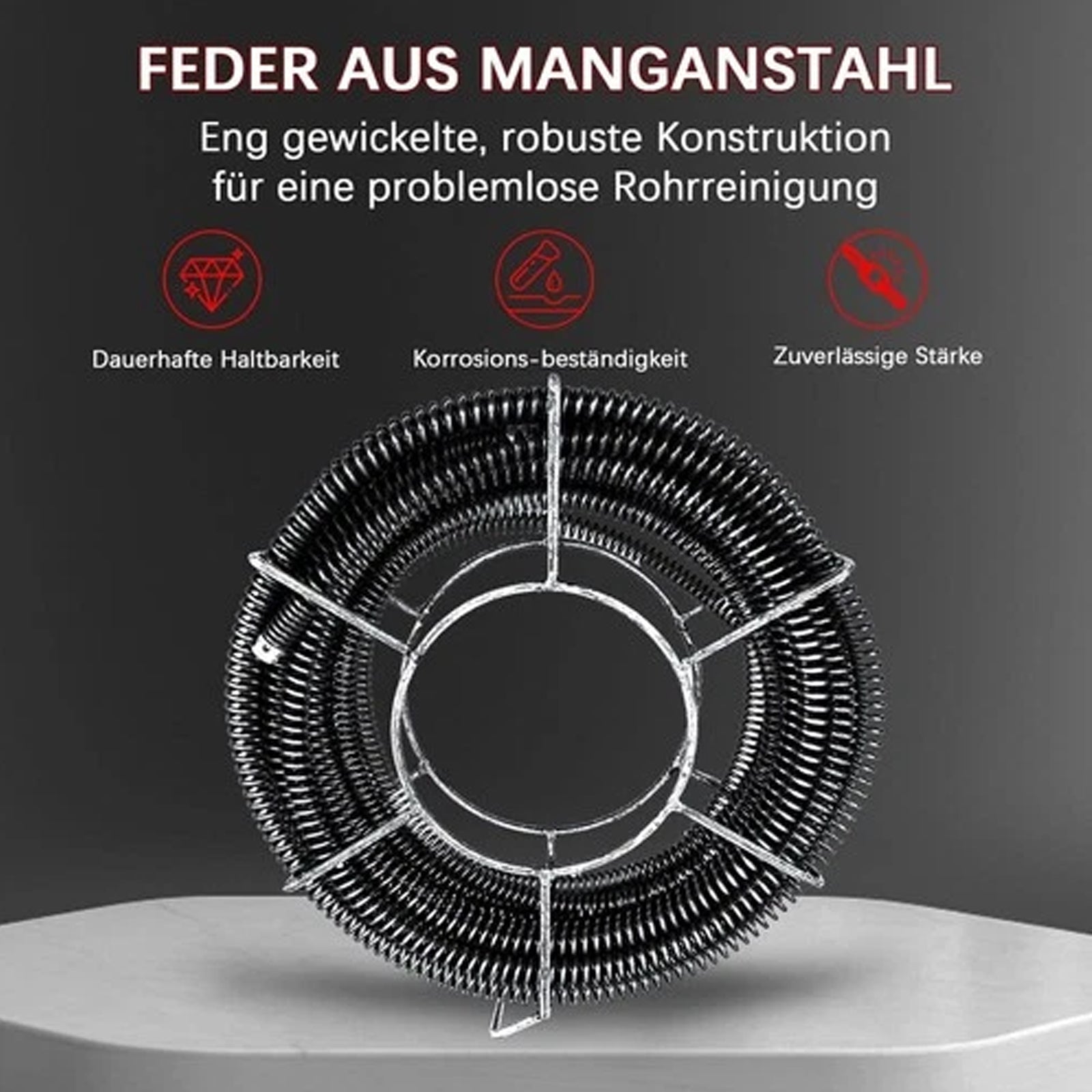 •7-piece cutting head set: Quickly switch between the 7 cutting heads to remove hair, grease, leaves, and all other viscous liquids and hard debris, restoring your pipes to optimal condition.