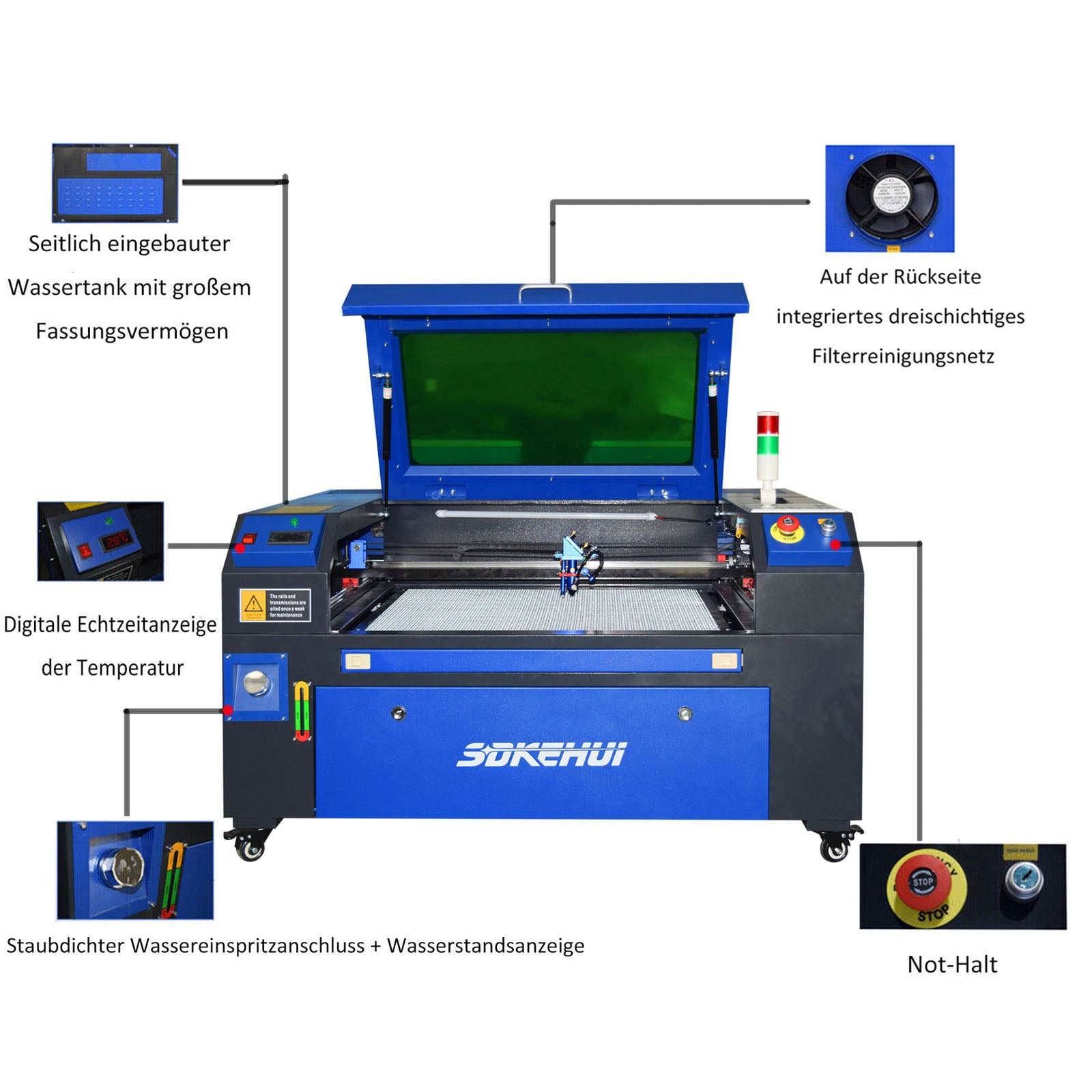 🔥Safe and easy to use: The transparent viewing window with tinted eye protection allows you to monitor the engraving process at any time, and it can automatically shut off the power when opened. In case something goes wrong, an emergency shutdown is available. Our laser engraver also has built-in air support to blow away smoke, dust, and sparks, and the movable wheels make it easy to move around.